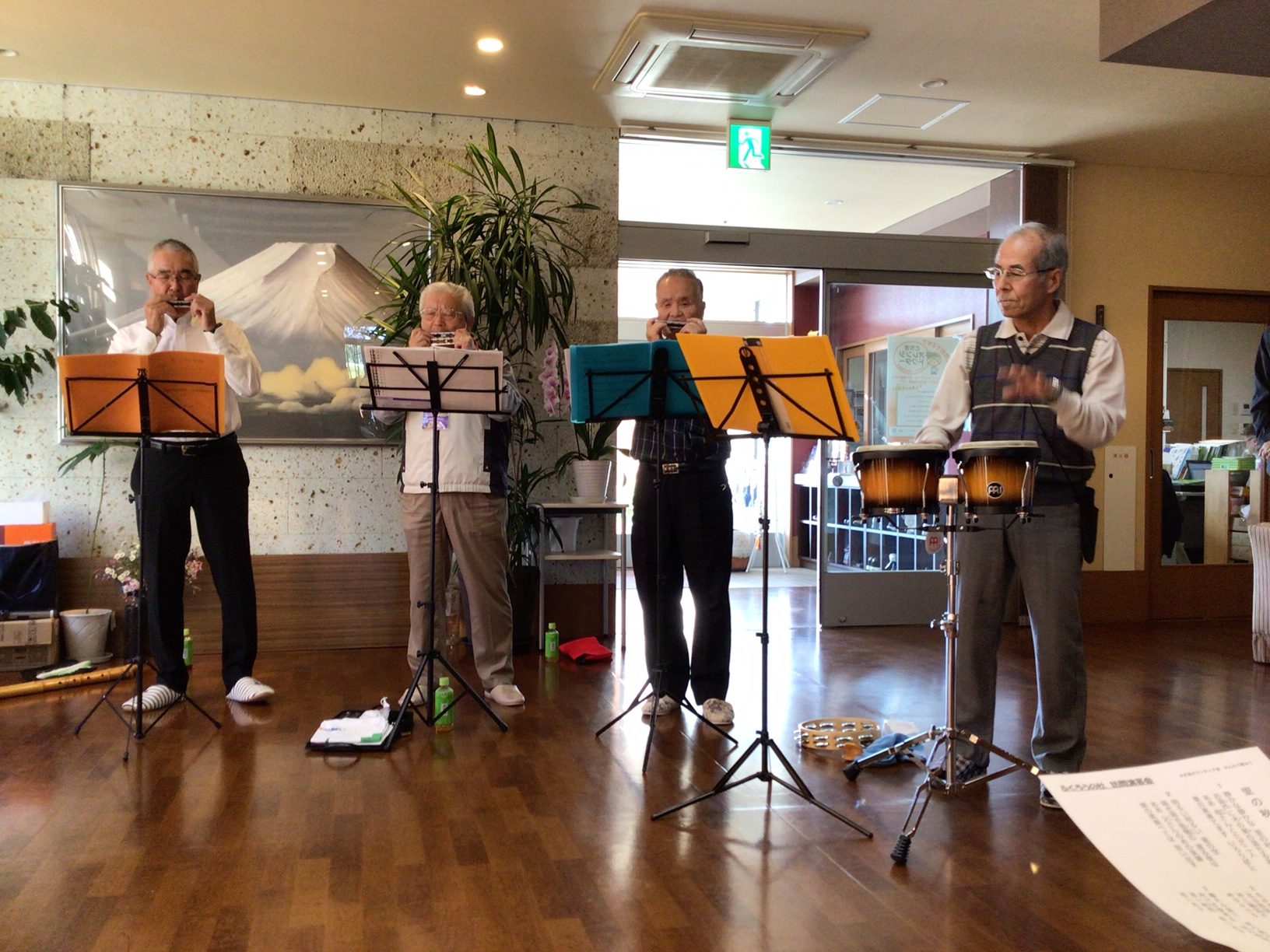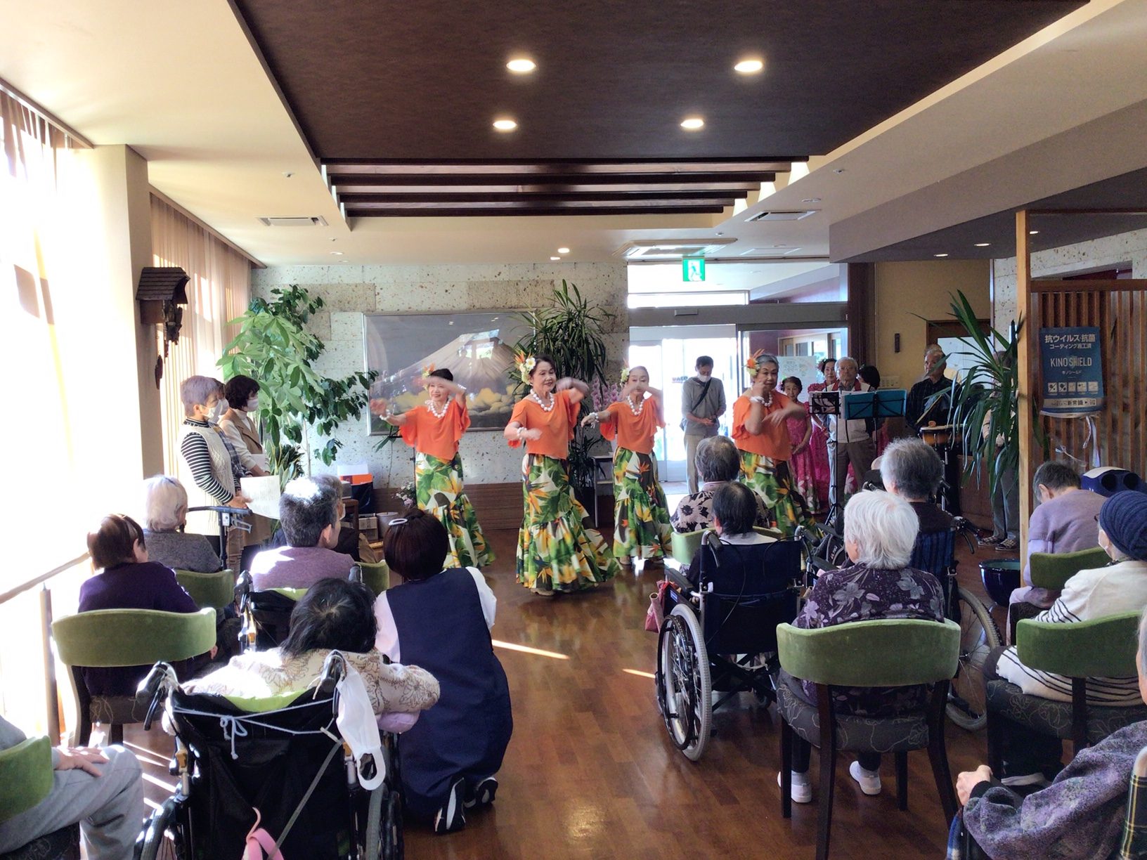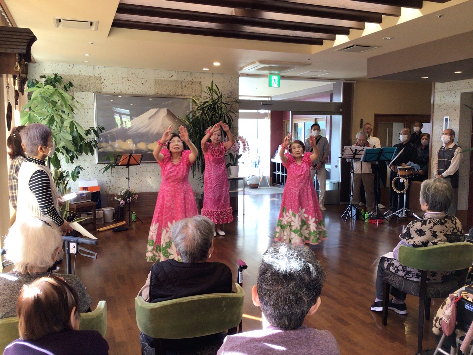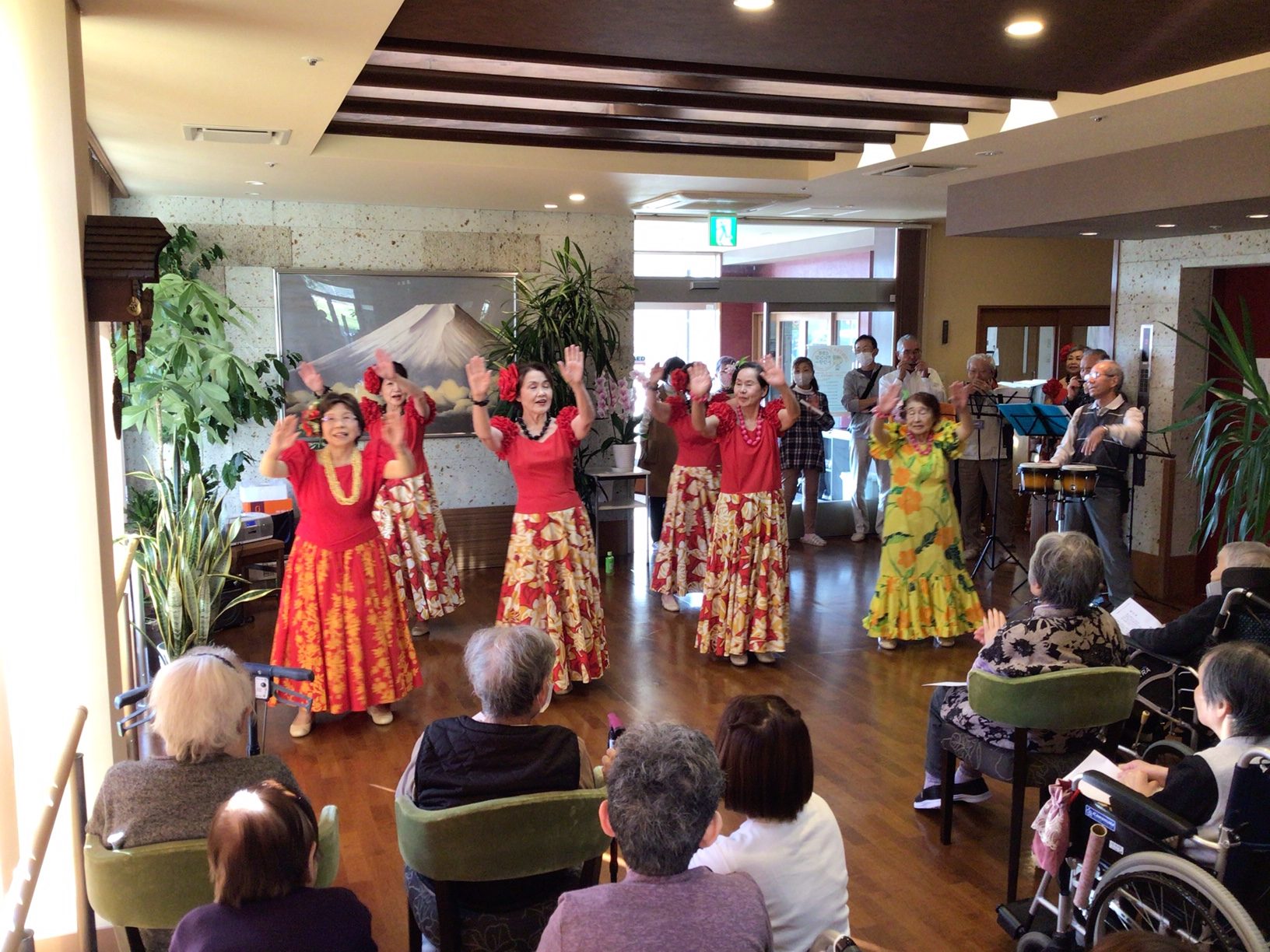 先日、さぎ草様によるフラダンス・合奏などのボランティアに来ていただきました。